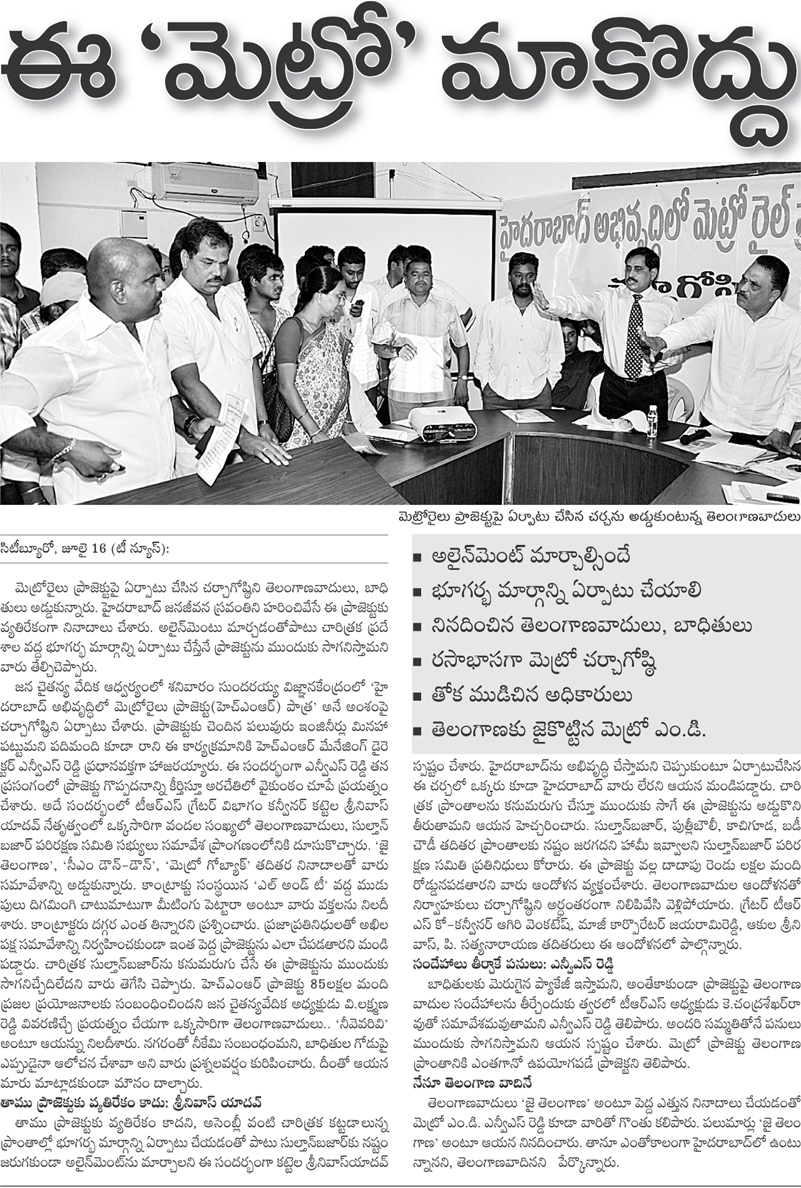 http://www.epaper.namasthetelaThe earlier article by Prof. C. Ramachandraiah in Telugu in à°†ంà°§్à°° à°œ్à°¯ోà°¤ి (10 à°®ాà°°్à°šి2011) on "Metro Rail & Political Parties" may be accessed here- http://www.citizenhyderabad.com/files/CR-Hyderabad%20Metro%20&%20Political%20Parties-Telugu%20article-AndhraJyothy-10March2011.jpg